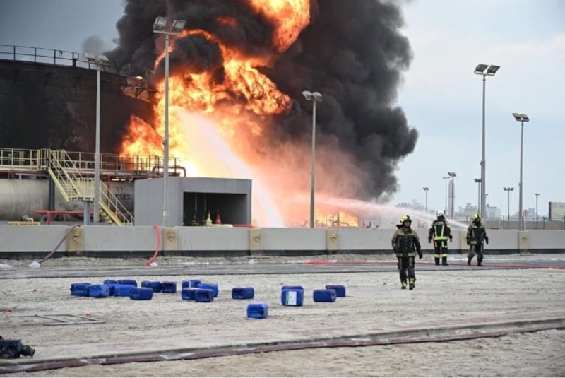 Saldırının ardından tesiste yangın çıktığı bildirildi.