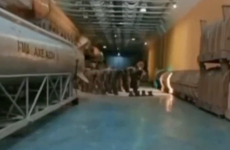 Görüntülerde İslam Devrim Muhafızları Hava Kuvvetleri’ne ait füze tünelinde bir grup askerin akşam namazını kıldığı anlar yer aldı.