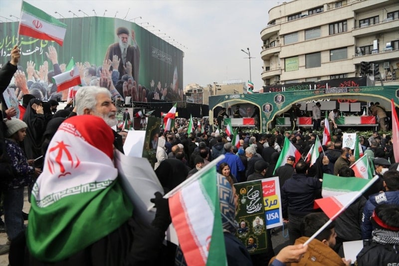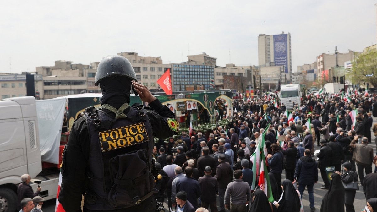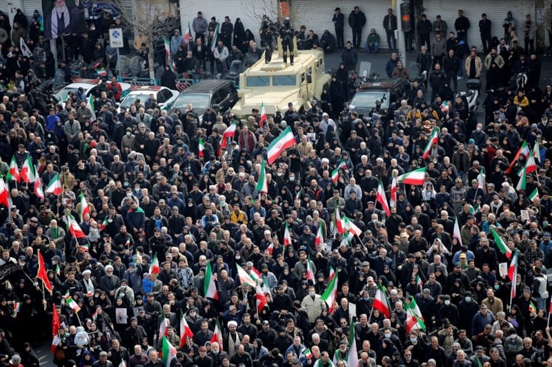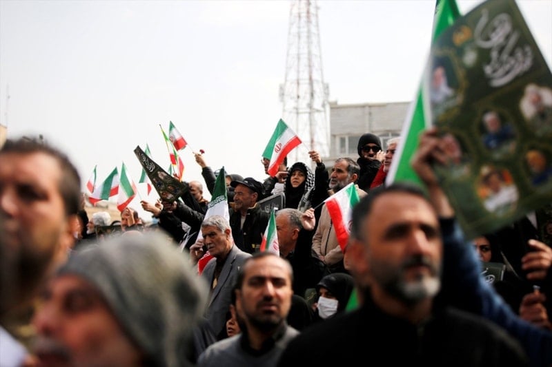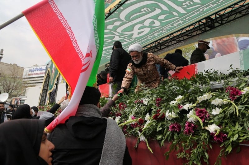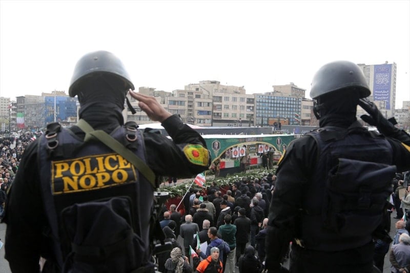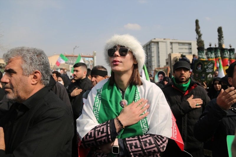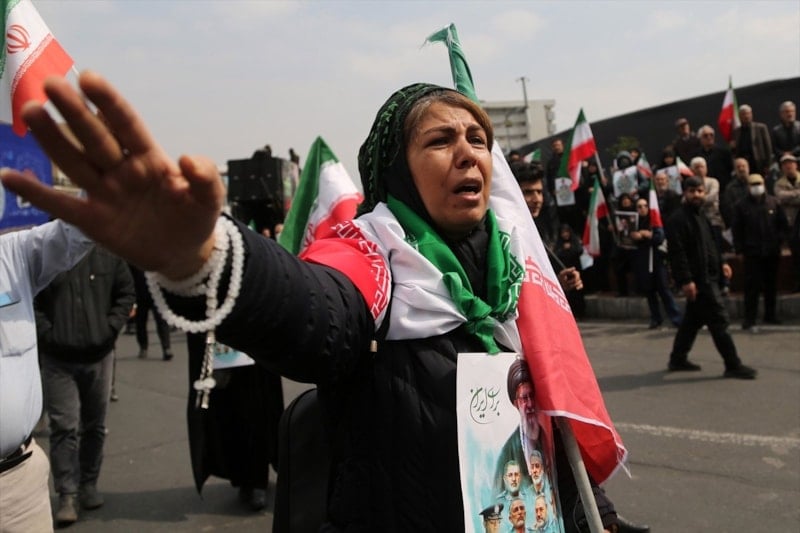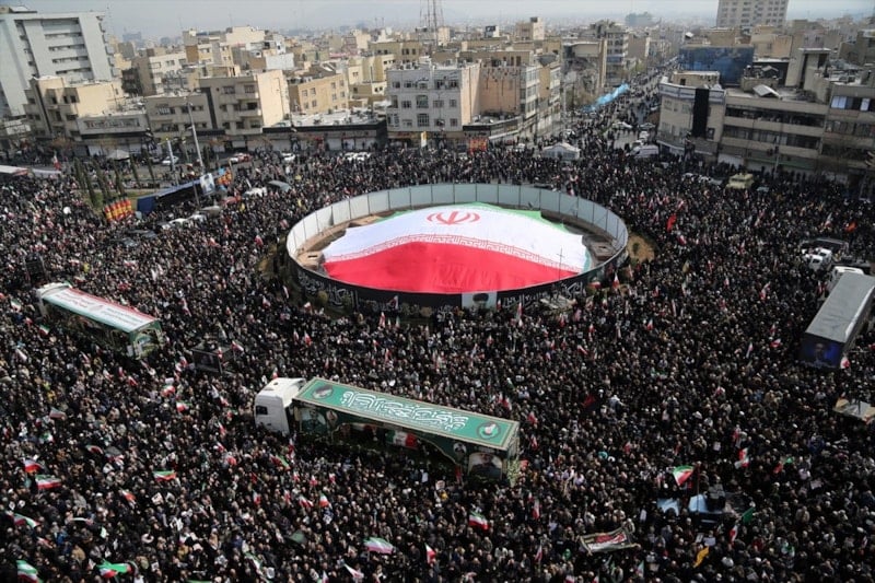 İran’da on binlerce kişi, ABD ve İsrail saldırılarında hayatını kaybeden İranlı komutanların cenaze törenine katılmak için başkent Tahran’daki İnkılap Meydanı’nda bir araya geldi.