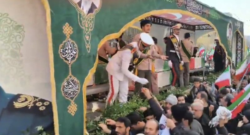 O sırada da İranlı vatandaşların eşyalarını askerlere verdiği onların da tabutlara sürerek geri verdikleri görüldü.