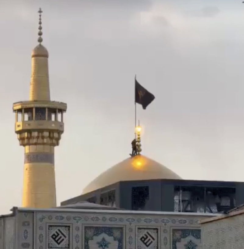 Öte yandan Meşhed kentindeki İmam Rıza Türbesi’nin kubbesine siyah bayrak çekildi.