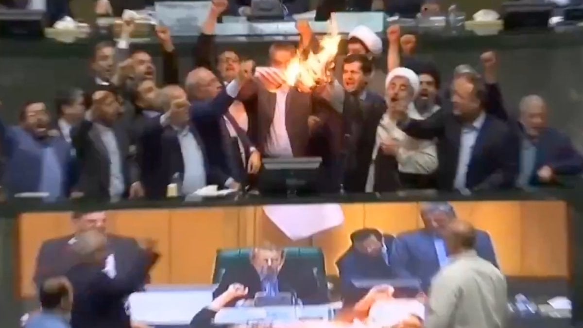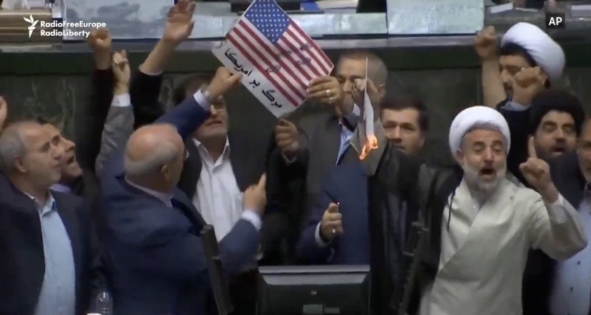 İran Parlamentosu’nda milletvekilleri, ‘Amerika’ya ölüm’ sloganları ile ABD bayrağı yaktı.