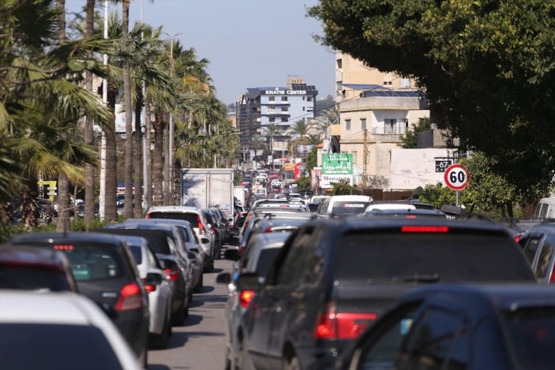 Arabalarına binen Lübnanlı vatandaşlar yollara akın ederken kalabalık nedeniyle yoğunluk oluştu.