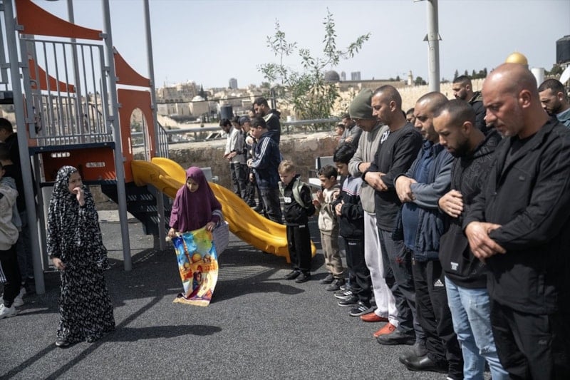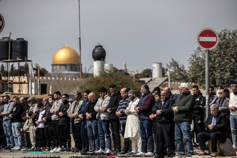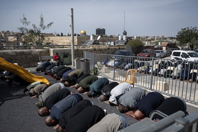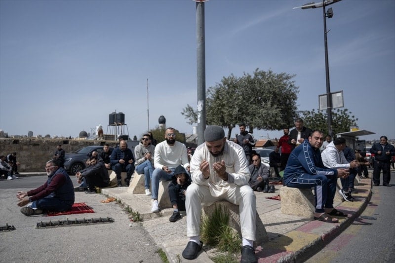 Müslümanlar, Aksa’nın ibadete kapatılması üzerine mübarek ayın son cuması namazını sokaklarda kılmak zorunda kaldı.