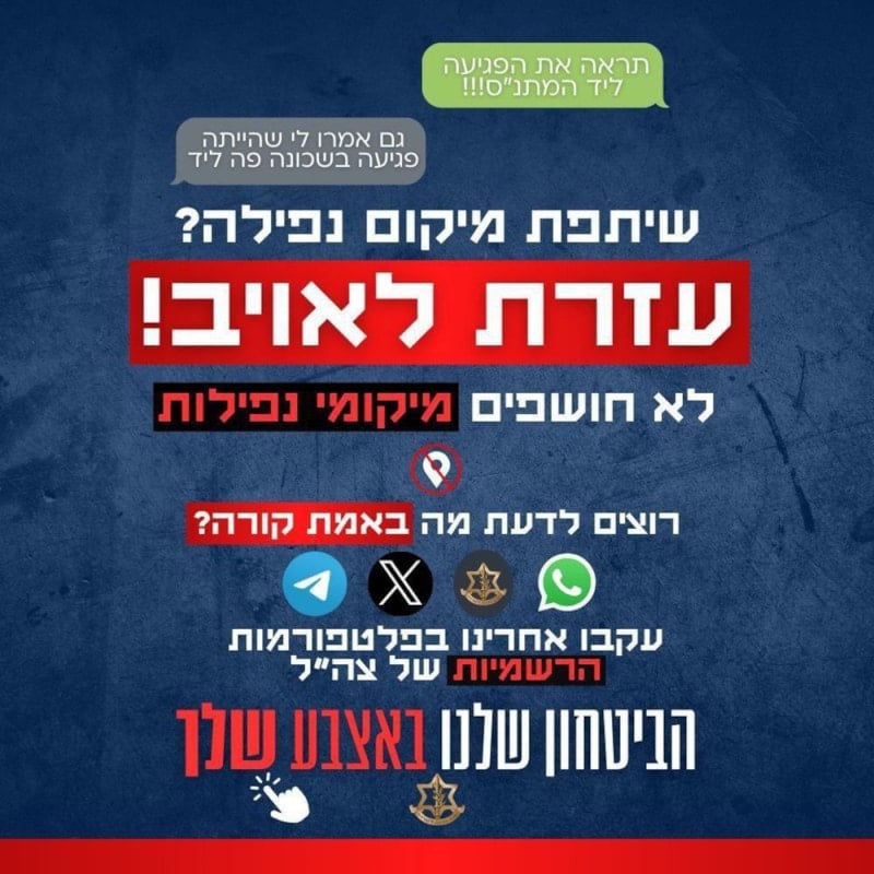 İsrail ordusundan yapılan açıklamada, vatandaşların sosyal medyada paylaşımlarına özen göstermesi istendi. Ordunun uyarısında, İran’ın misillemelerinde hedef alınan bölgelerin görüntülerinin yayınlanmasının “düşman” tarafından takip edildiği ifade edildi.