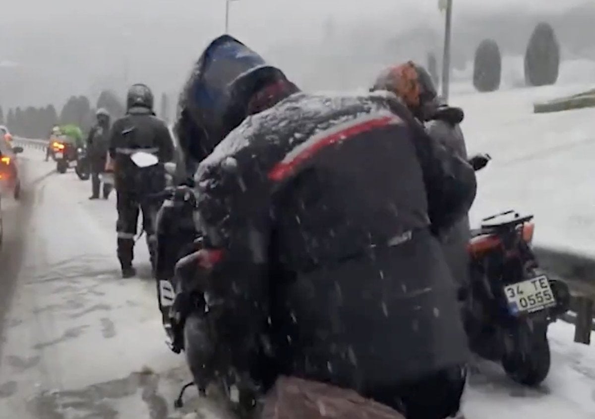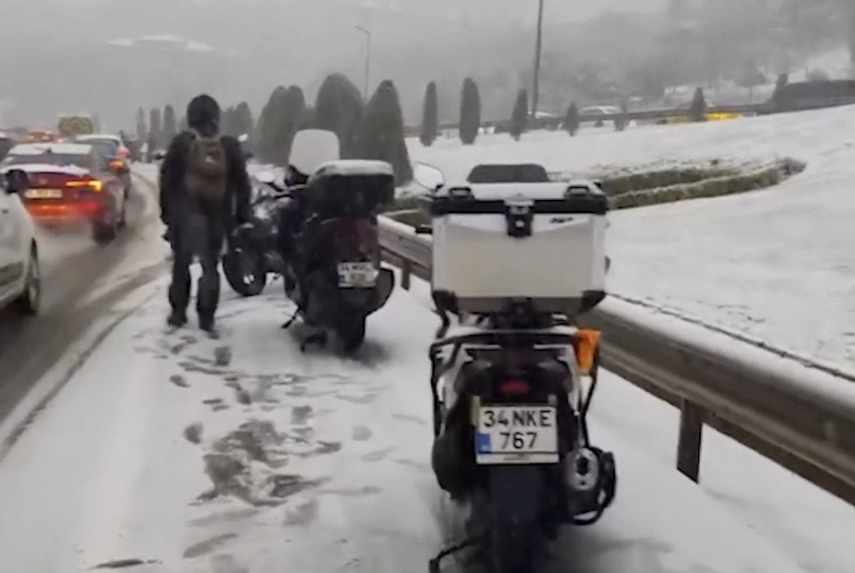 İstanbul’da kar yağışı trafiği felç etti: Motorcular yolda kaldı