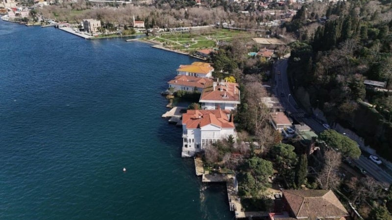 Üst açıdan yapılan çekimlerde simetrik pencere düzeni, cumbalı bölümleri ve Boğaz’a açılan geniş terası dikkat çekti.