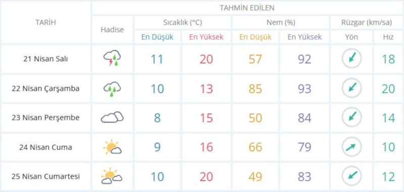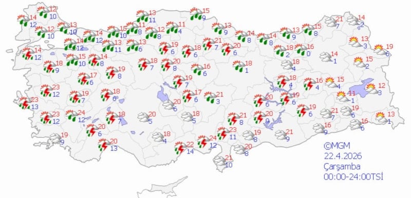 Yağışların 22 Nisan Çarşamba günü Anadolu Yakası ve Boğaz çevresinde yer yer kuvvetli olmasının beklendiği, yağışlı sistemin perşembe sabah kenti terk edeceğinin tahmin edildiği kaydedilen açıklamada, “Sıcaklıkların çarşamba günü mevsim normallerinin 4 ila 6 derece altına düşeceği, cuma günü tekrar mevsim normallerine yükselmesi beklenmektedir” denildi.
