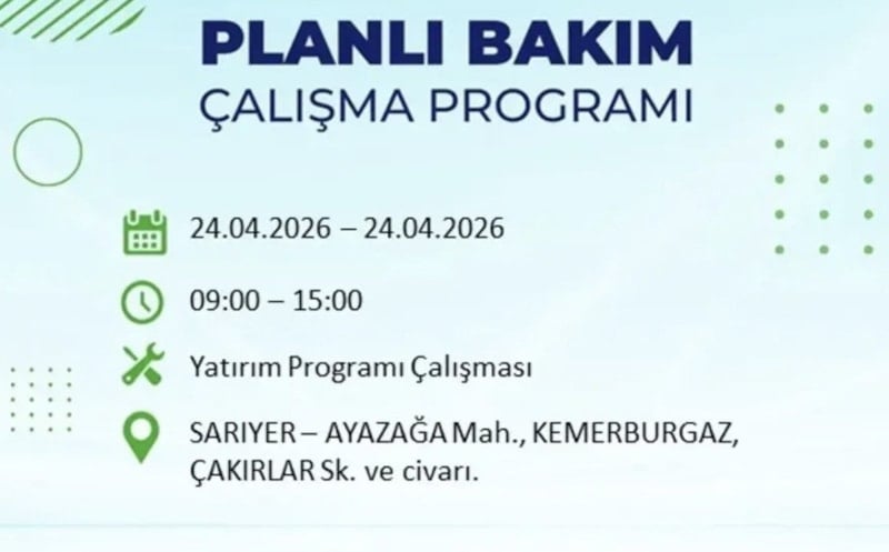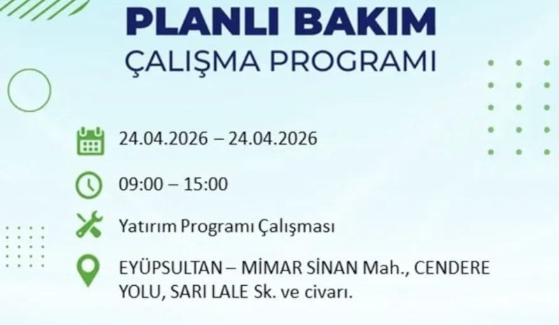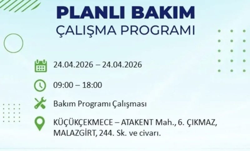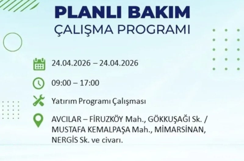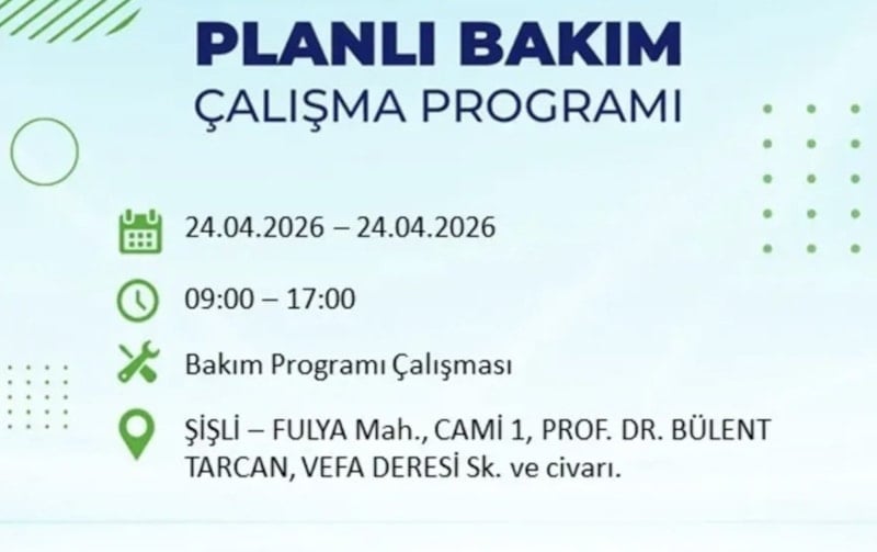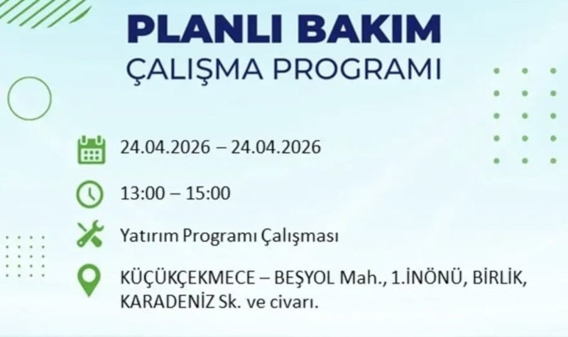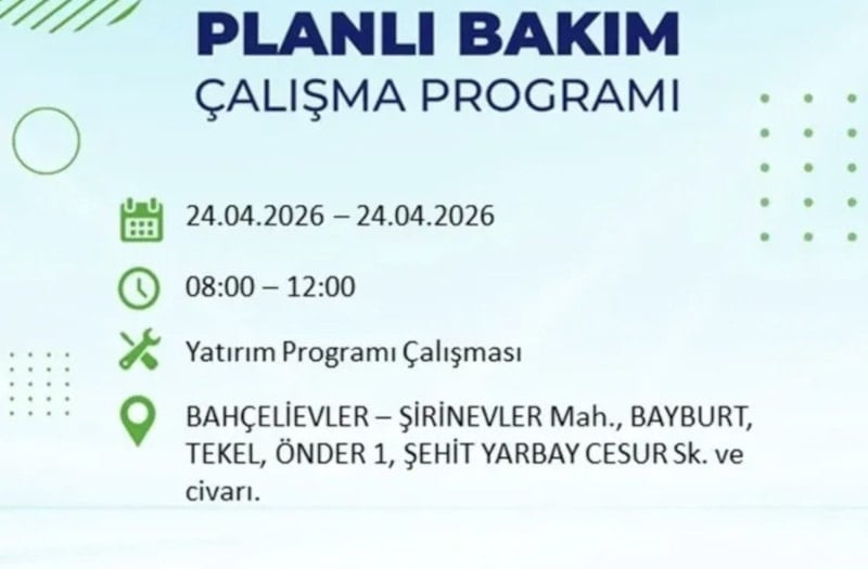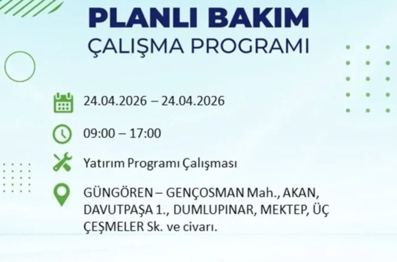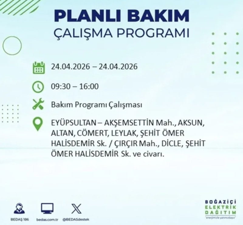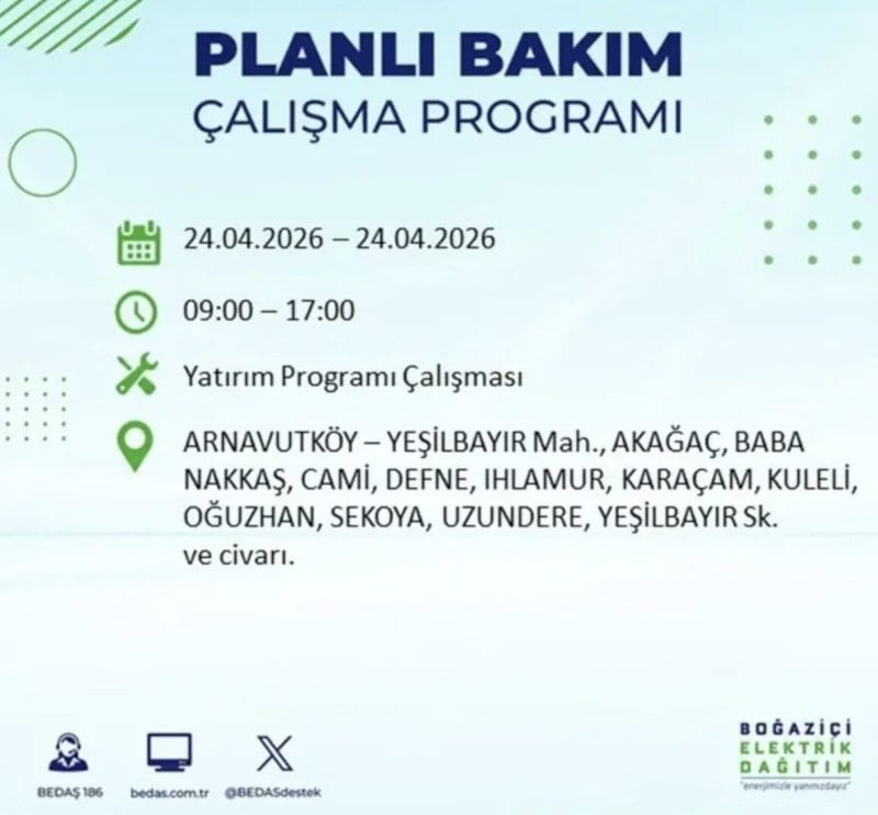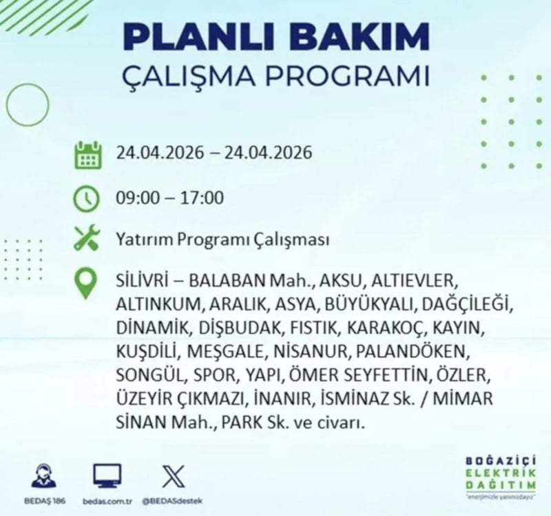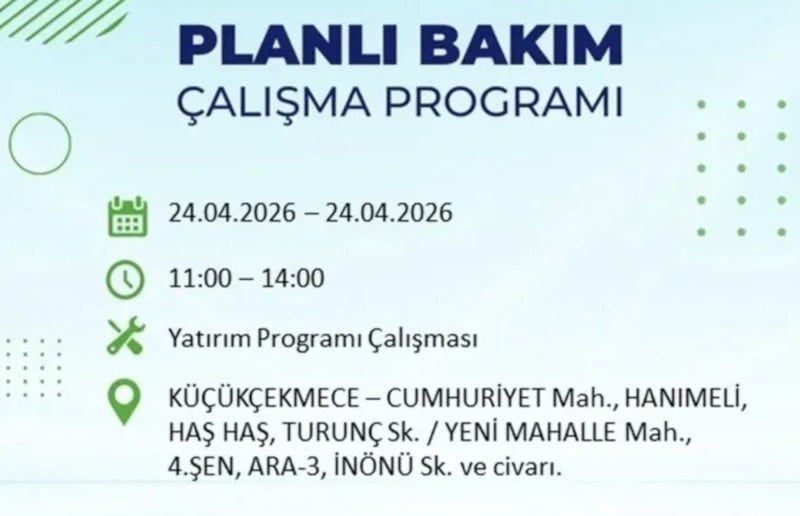24 Nisan 2026 Cuma günü, İstanbul’un bazı bölgelerinde elektrik kesintisi yaşanacak.