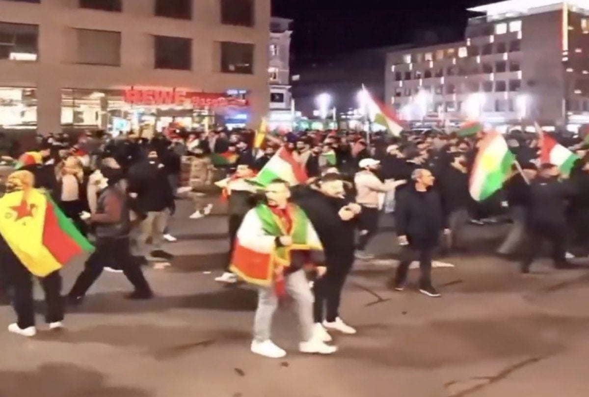 Suriye’deki gelişmeleri bahane eden terör örgütü yandaşları, İsveç’in başkenti Stockholm’de gösteri düzenledi.
