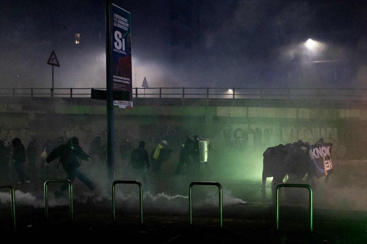 Güvenlik güçleri, havai fişek atan göstericilere copla müdahalede bulundu. İtalyan basınında yer alan haberlere göre olaylarda 6 kişi gözaltına alındı.