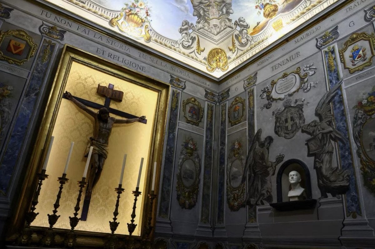 Kilisede 2025’te yapılan restorasyon sonrası, İtalya’nın eski kralı 2. Umberto’nun büstü üzerinde duran iki melek figüründen birinin yüzü net biçimde İtalya Başbakanı Giorgia Meloni’ye benzer hale geldi.