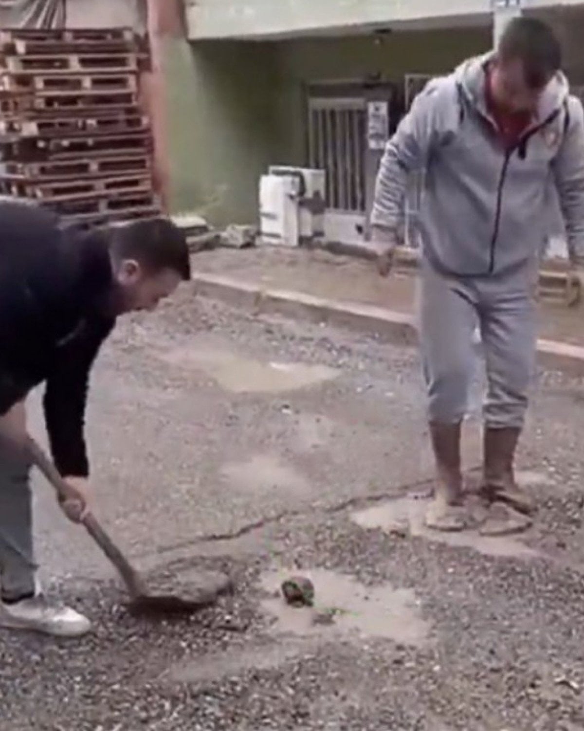 Belediyenin onarmadığı yollar için ellerine kazma kürek alan vatandaşlar, kendi mahallerindeki yolları düzeltmeye başladı.