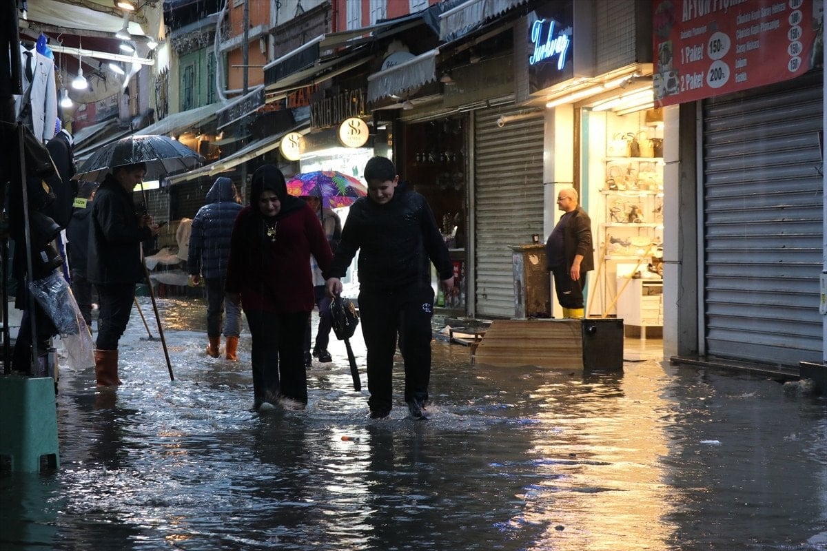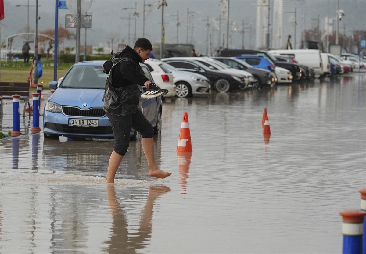 İzmir’de etkili olan sağanak, yaşamı olumsuz etkiledi.
