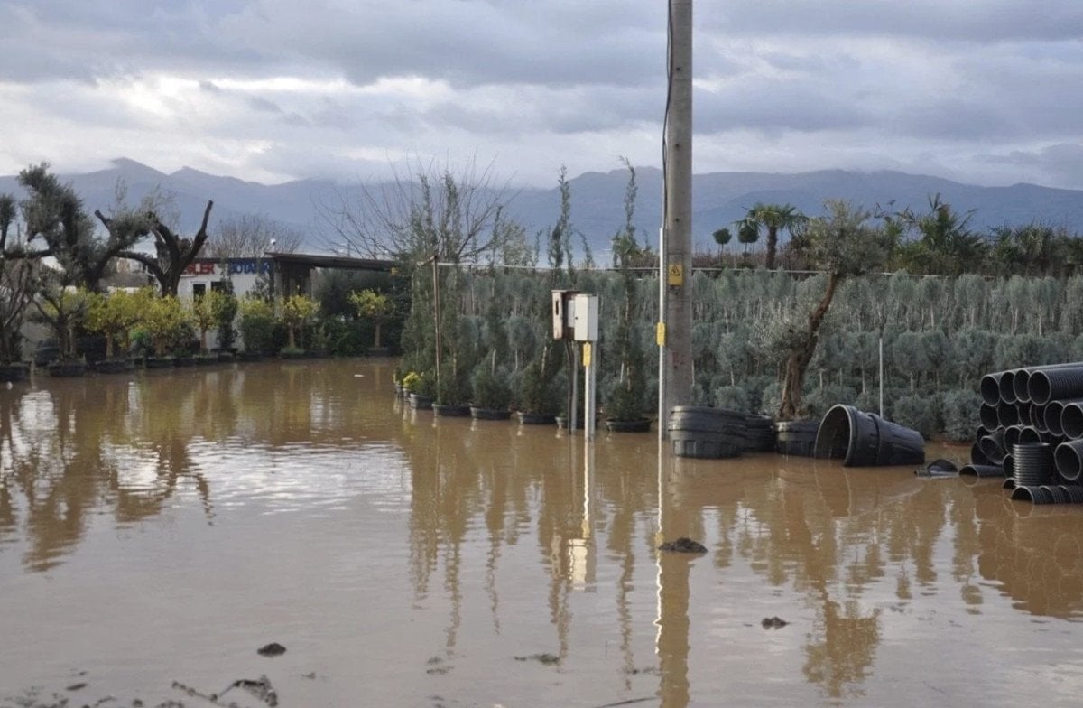 Tombaklı mevkiinde bir elektrik direği dere yoluna devrildi, yollarda çökmeler yaşandı, çevredeki bazı çiçek seralarını da su bastı.
