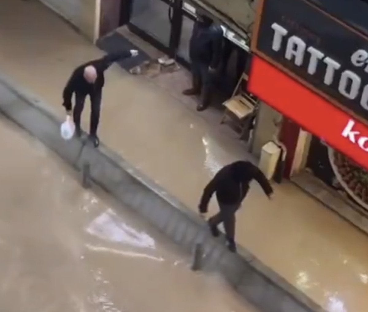 Suyun içine girmemek için mücadele veren vatandaşları o anları da bölgedeki bir başka vatandaşın kamerasına yansıdı.