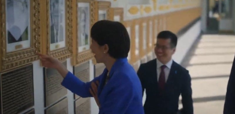 Takaiçi, Beyaz Saray’ı gezerken Trump’ın portresinin ardından eski başkan Joe Biden’ın “kelam” portresine de dakikalarca gülerken kameralara yakalandı.