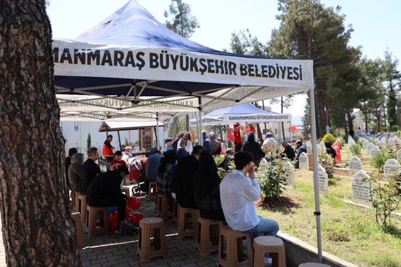 Kahramanmaraş okul saldırısı sonucu 4 öğrencinin yan yana bulunan Şeyh Adil Mezarlığındaki mezarları 23 Nisan Ulusal Egemenlik ve Çocuk Bayramı’nda ziyaret ediliyor.