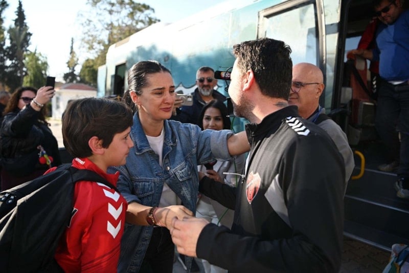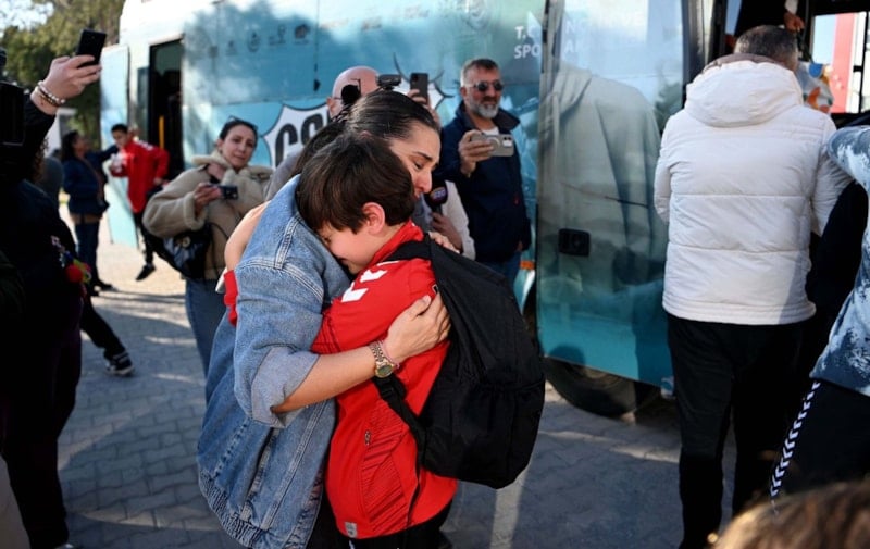 İstanbul’dan uçakla İzmir’e geçen kafile, buradan kara yoluyla Kuşadası’na ulaştı. Kulüp tesislerinde sporcuları aileleri ve yakınları gözyaşlarıyla karşıladı.
