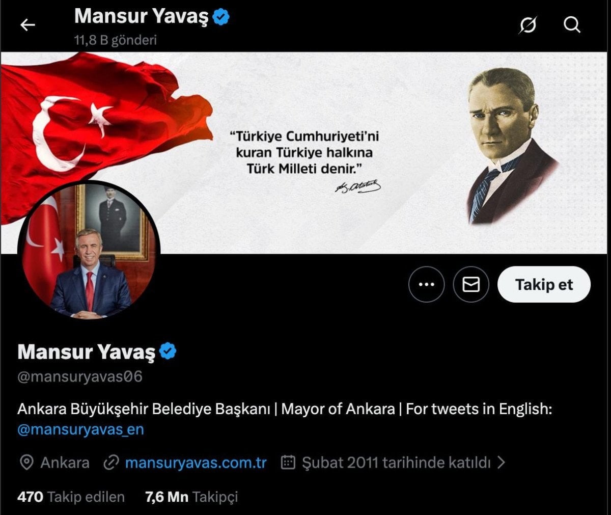 Tanal’ın sosyal medya linci devam ederken Ankara Büyükşehir Belediye Başkanı Mansur Yavaş X hesabındaki kapak fotoğrafını değiştirdi.