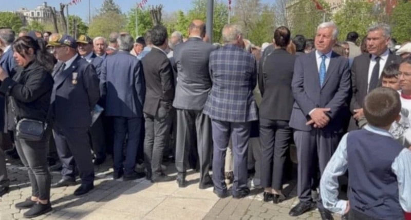 Gaziantep’te il protokolü ile siyasi partilerin katıldığı anaokulu öğrencilerinin mehter şovuna CHP ekibi, çocuklara sırtlarını dönerek mehteranı protesto etti.