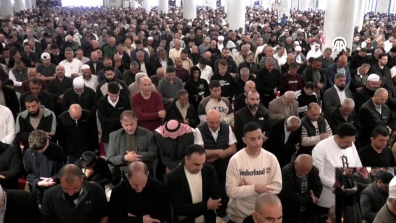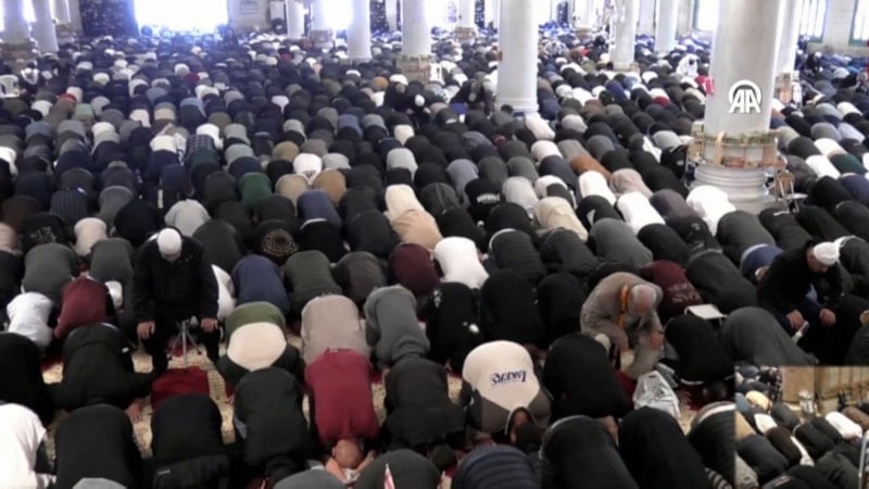 Harem-i Şerif’te sonra kılınan ilk cuma namazında on binlerce Müslümanın Mescid-i Aksa’yı doldurdu.