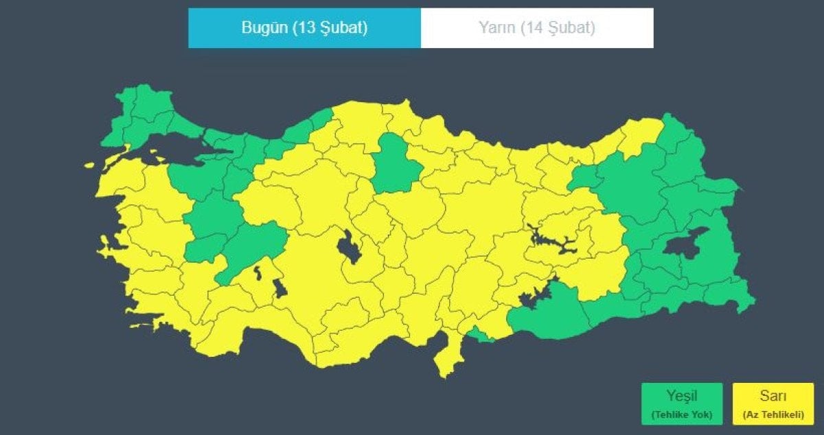 Meteoroloji’nin son değerlendirmesine göre şu iller için sarı kodlu uyarı verildi: