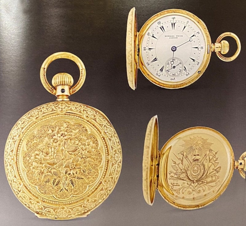 (Arkasında Sultan Abdülhamid’in tuğrasısının bulunduğu som altından bir saat)