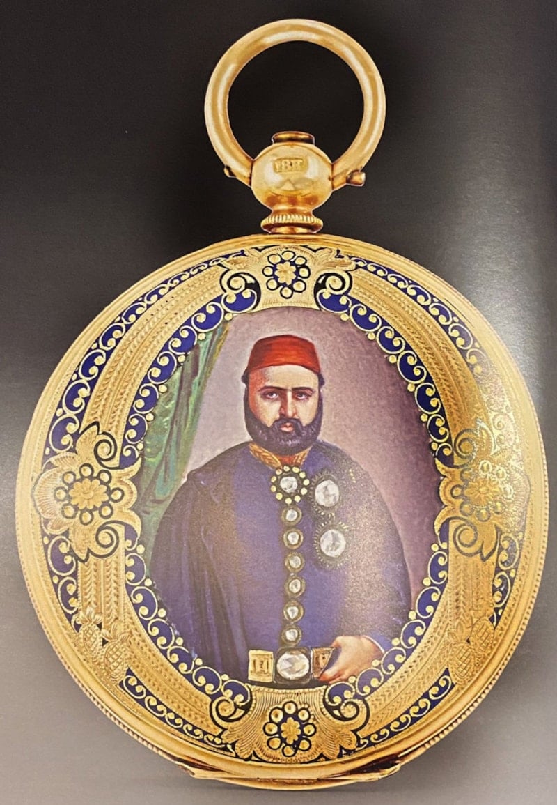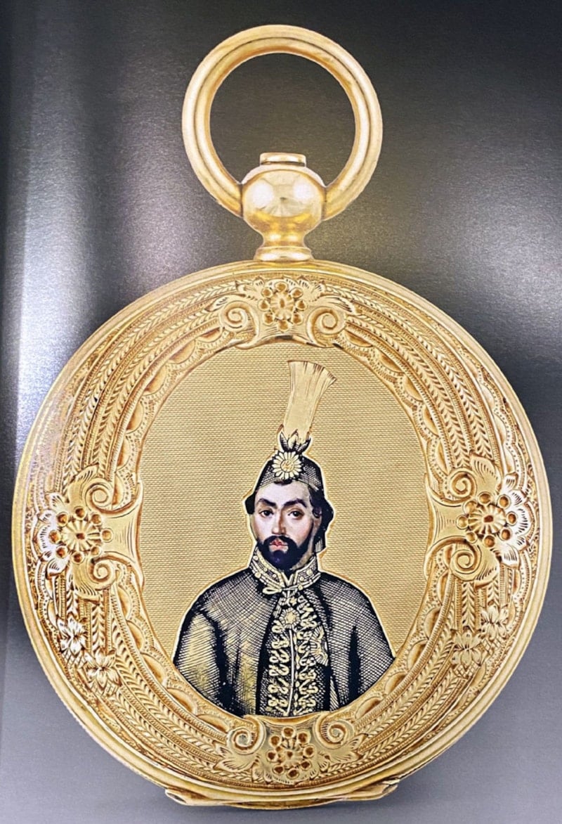 (Yine 19. yüzyılın ortalarında yapılmış altın bir cep saatinin arka yüzündeki Sultan Abdülmecid çizimi)