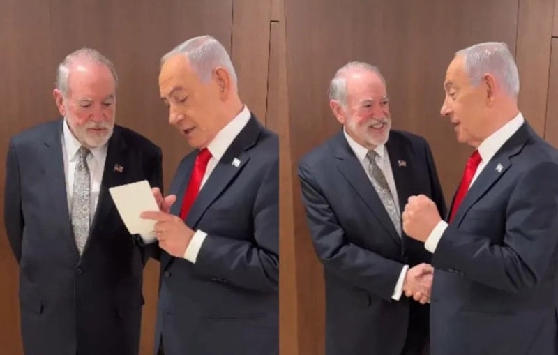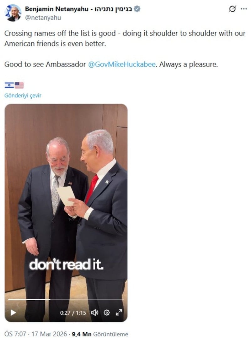 Görüşme sırasında Netanyahu, cebinden çıkardığı bir kartı Huckabee’ye göstererek üzerinde çeşitli isimlerin bulunduğunu belirtti: