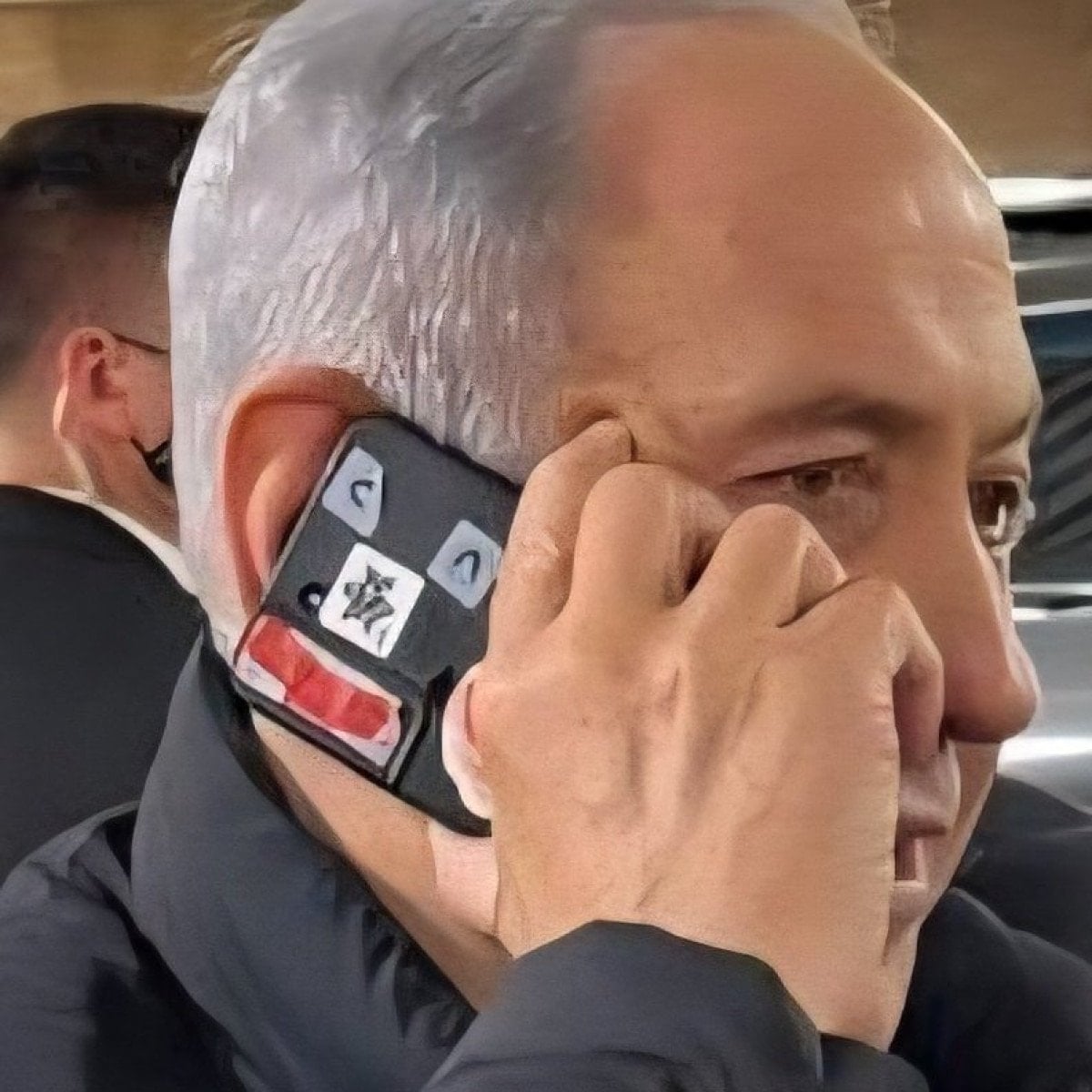 Binyamin Netanyahu’nun kullandığı telefonun kamerasının bantla kapatıldığı görüldü.