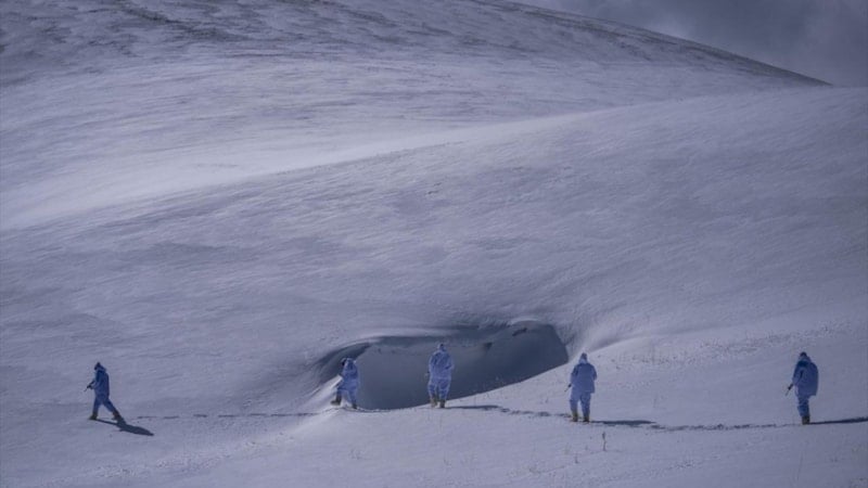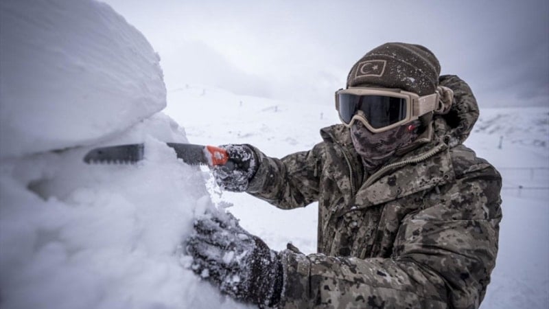 Başkanlık olarak kış şartlarında doğada arama kurtarma kursunda personeli eğittiklerini belirten özel harekat polisi, “Personelimize kış şartlarında doğada oluşabilecek farklı senaryolara hem teknik ekipman kullanarak hem de ekipman bulunmadığında doğanın imkanlarını değerlendirerek arama kurtarma faaliyetlerini yürütme becerisi kazandırıyoruz.” dedi.