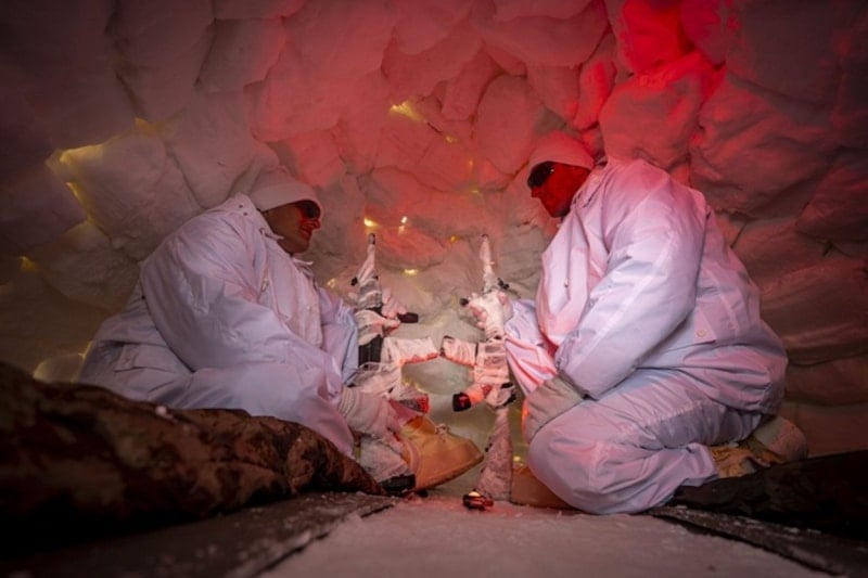 Dağdaki 3 günlerini iglo ev ve mağaralarda geçiren polisler, kayak yapmayı ve çetin kış şartlarında doğada kalmayı öğrendi.