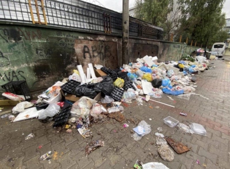CHP’li İzmir Büyükşehir Belediyesi’nin toplamadığı çöpler, şehrin sokaklarında yığın haline geliyor.