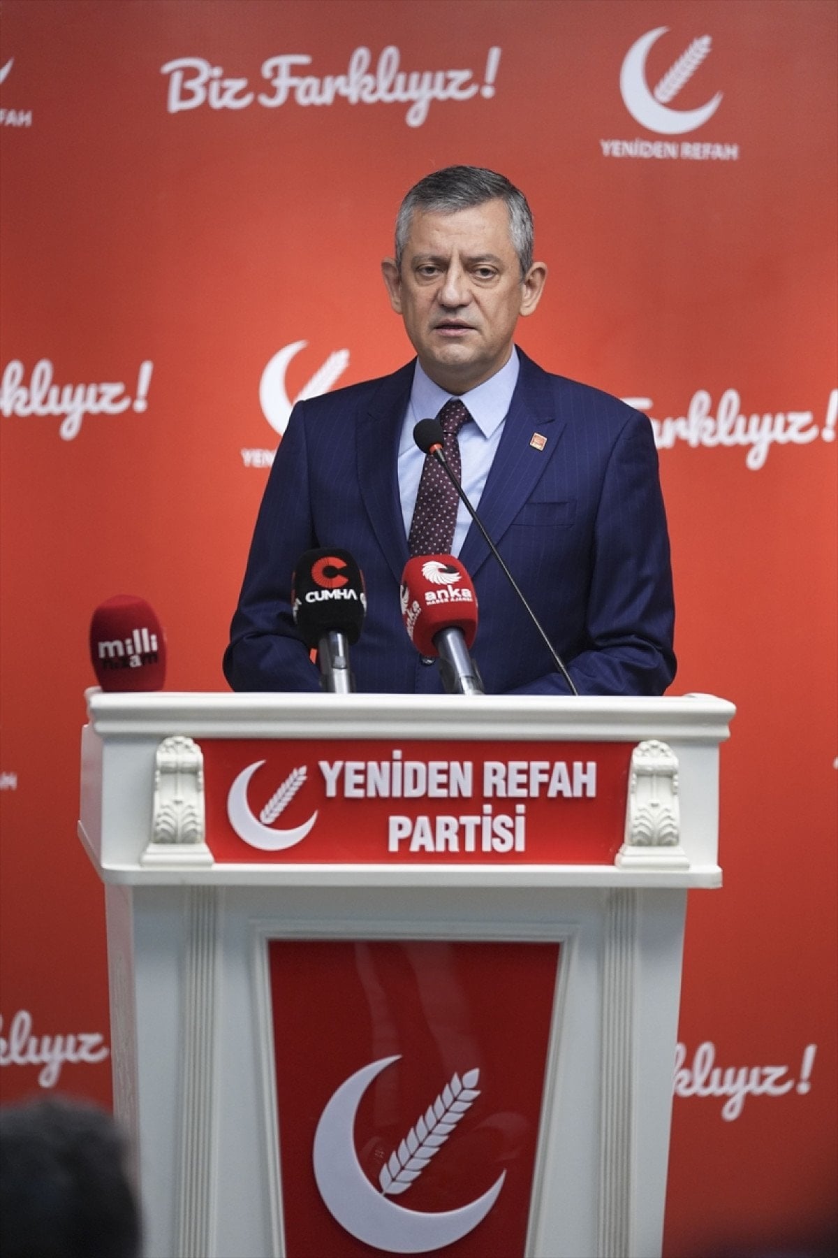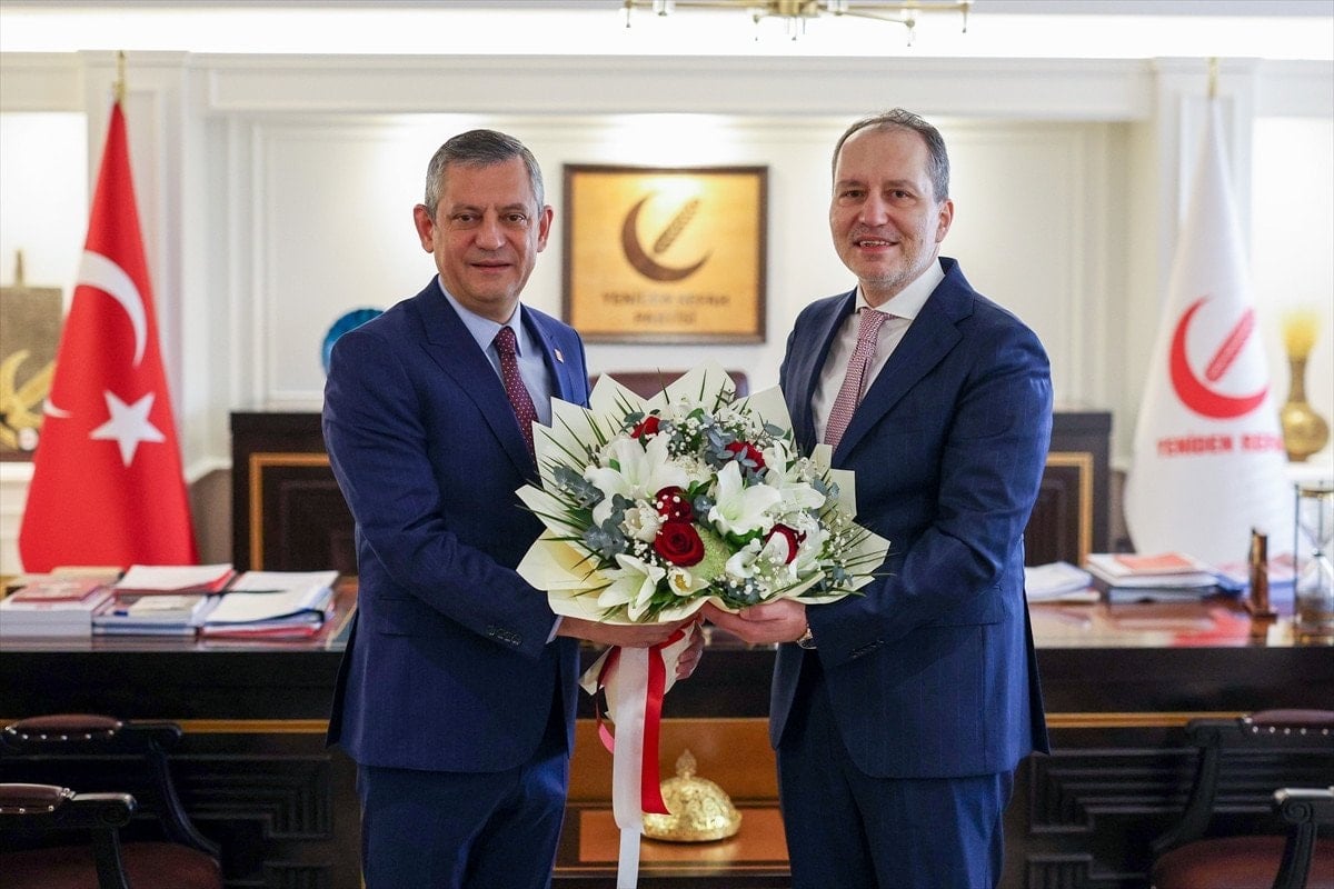 CHP Genel Başkanı Özgür Özel, beraberindeki heyetle Yeniden Refah Partisi Genel Merkezi’nde Fatih Erbakan’ı ziyaret etti. Yaklaşık bir saat süren ve basına kapalı gerçekleştirilen görüşmenin ardından iki lider ortak basın toplantısı düzenledi.