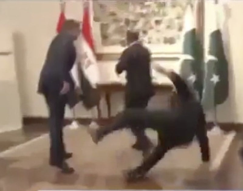 Pakistan Dışişleri Bakanı Dar, Mısırlı mevkidaşı Abdelatty’ı karşılama protokolünde, dengesini kaybederek yere düştü.