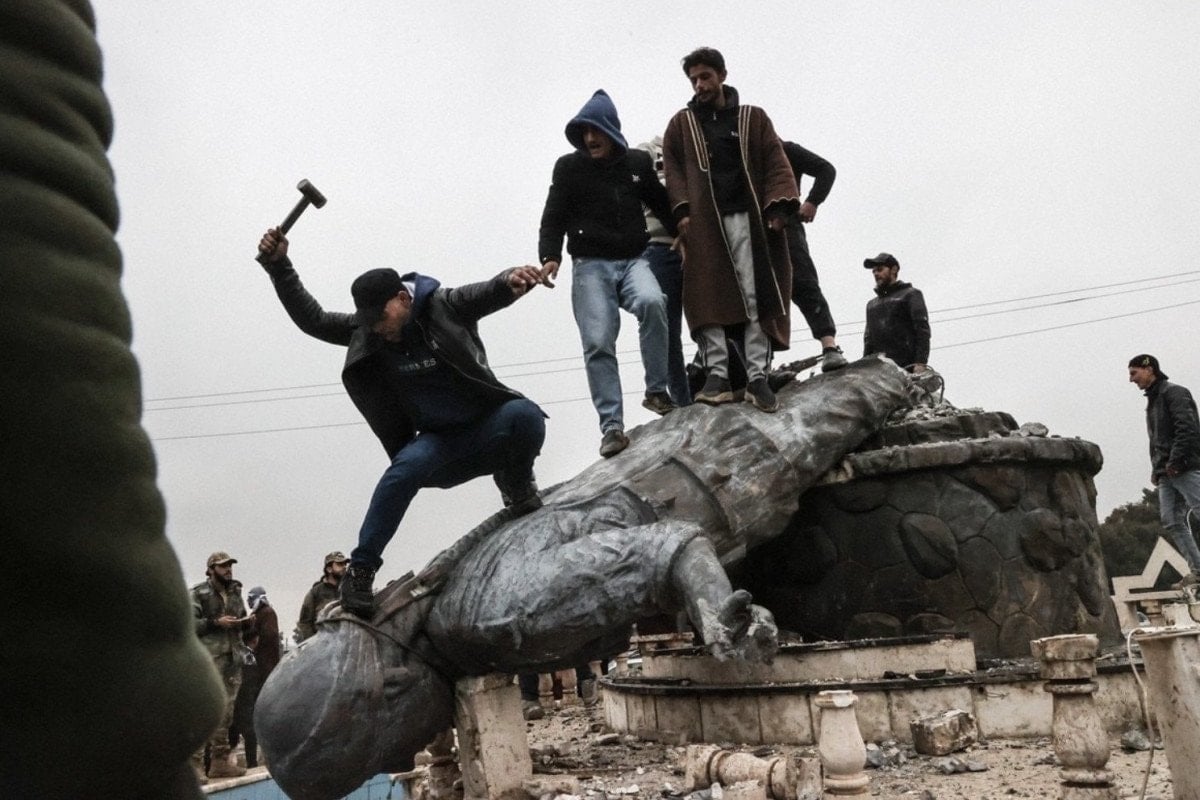 POSTERLERİ YAKTILAR, HEYKELLERİ YIKTILAR