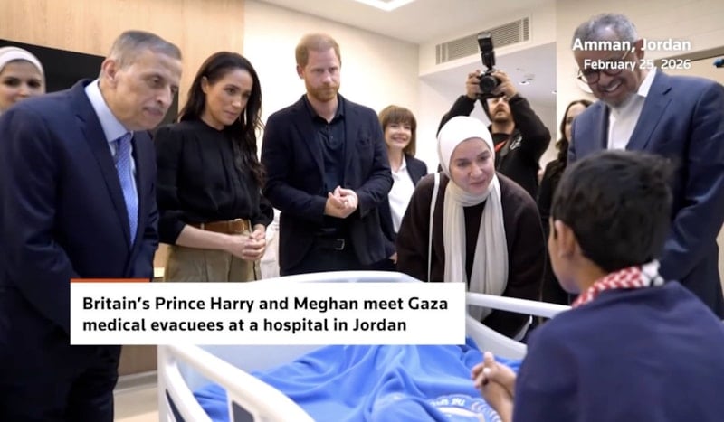Ürdünde bulunan İngiltere Kralı 3. Charles’ın oğlu Sussex Dükü Prens Harry ve Düşesi Meghan Markle, Filistinli yaralıları ziyaret etti.