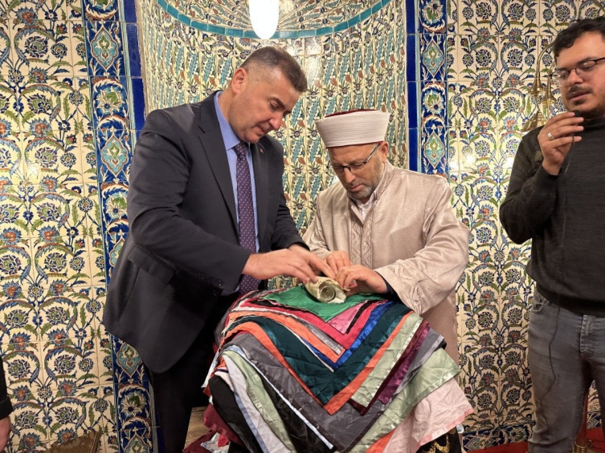 Caminin imamı ve Eğirdir Belediye Başkanı Mustafa Özer, Sakal-ı Şerif’i kutudan çıkardıktan sonra ziyaret başladı.