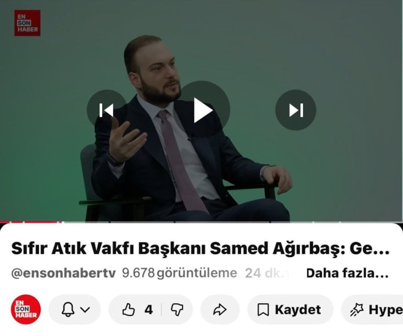 Sıfır Atık Vakfı Başkanı Samed Ağırbaş, 30 Mart Sıfır Atık Günü dolayısıyla Ensonhaber YouTube kanalında Çağlar Cilara’nın moderatörlüğünde yayınlanan ‘Son Durum’ programının konuğu oldu.