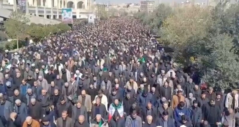 Tahran’daki en büyük ibadet alanlarından biri olan İmam Humeyni Musallası çevresinde toplanan binlerce kişi, saldırılarda hayatını kaybedenleri anarken İran ordusu ve Devrim Muhafızları’na destek mesajları verdi.