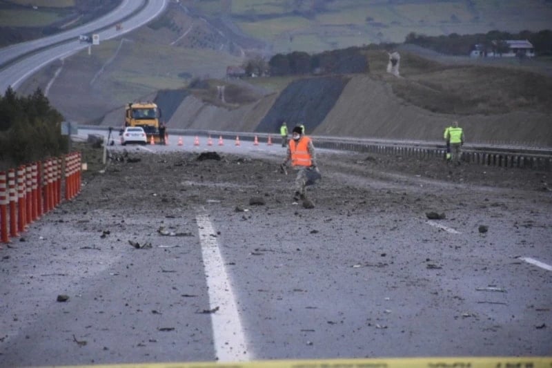 Otoyolda ilerleyen bir aracın kamerasına yansıyan görüntülerde, uçağın büyük bir gürültünün ardından patlamayla yere çakıldığı görüldü.