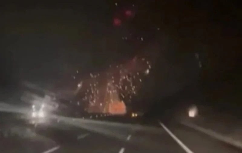 Görüntülerde, otoyolda ilerleyen araçtaki vatandaşların gökyüzündeki patlamayı fark ederek büyük şaşkınlık yaşadığı görülüyor.