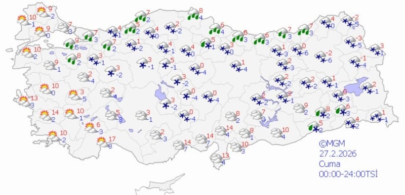 Minimum sıcaklıklar birçok noktada -5 ile -10 derece bandında ve bazı yüksek rakımlı yerlerde daha düşük değerler kaydediliyor.