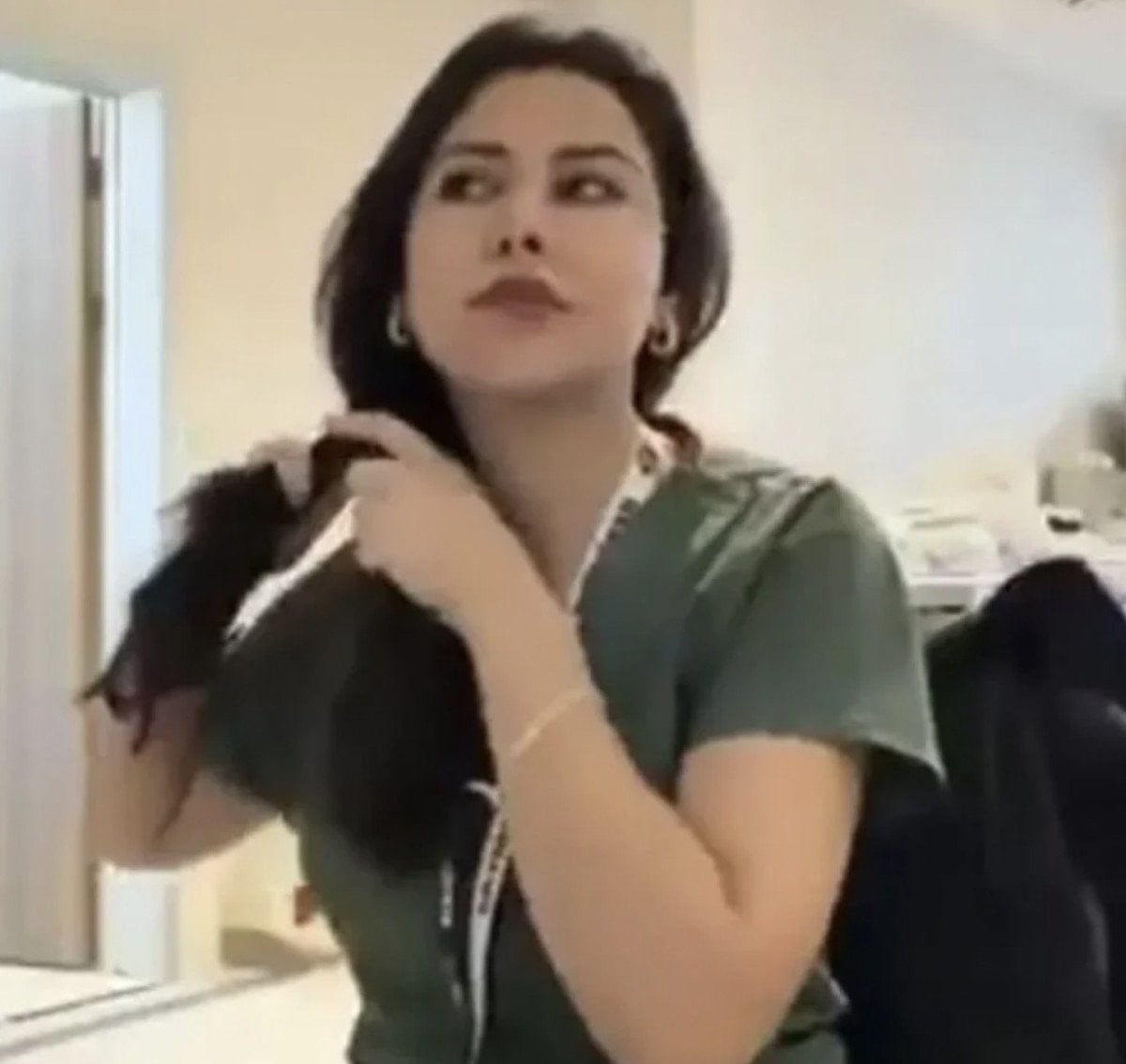 Kocaeli’deki bir kamu hastanesinde hemşire olarak çalışan İ.A., görevi başındayken saçlarını ördüğü videoyu kayda alarak, sosyal medya hesabından paylaşmıştı.