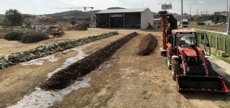 – Bu karışım, belirli aralıklarla kompost karıştırma makinesi ile karıştırılarak homojen hale getiriliyor.
