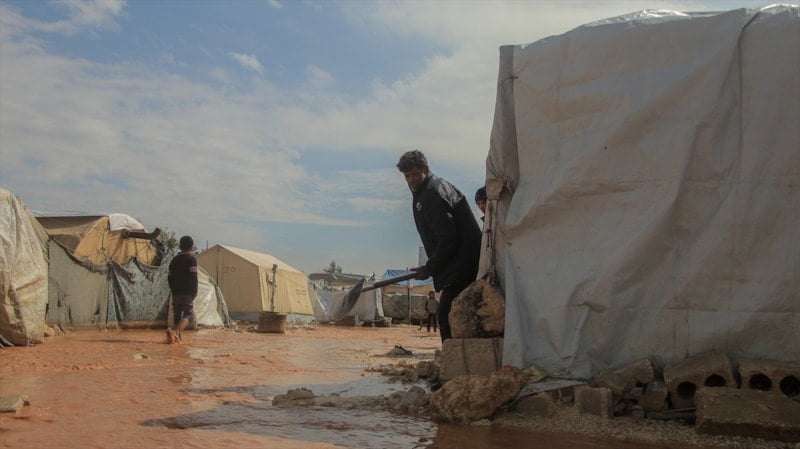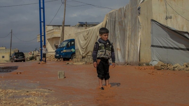 Suriye’nin Halep kentinin kuzeybatısında sağanak sonucu taşkınlar, devrik rejim ve destekçilerinin yerinden ettiği sivillerin kaldığı bazı kampları olumsuz etkiledi.