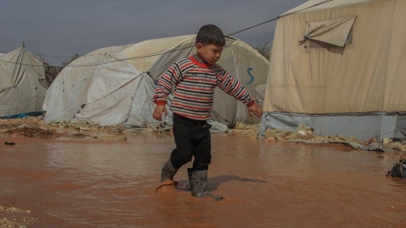 Suriye’nin Halep kentinin kuzeybatısında sağanak sonucu taşkınlar, devrik rejim ve destekçilerinin yerinden ettiği sivillerin kaldığı bazı kampları olumsuz etkiledi.