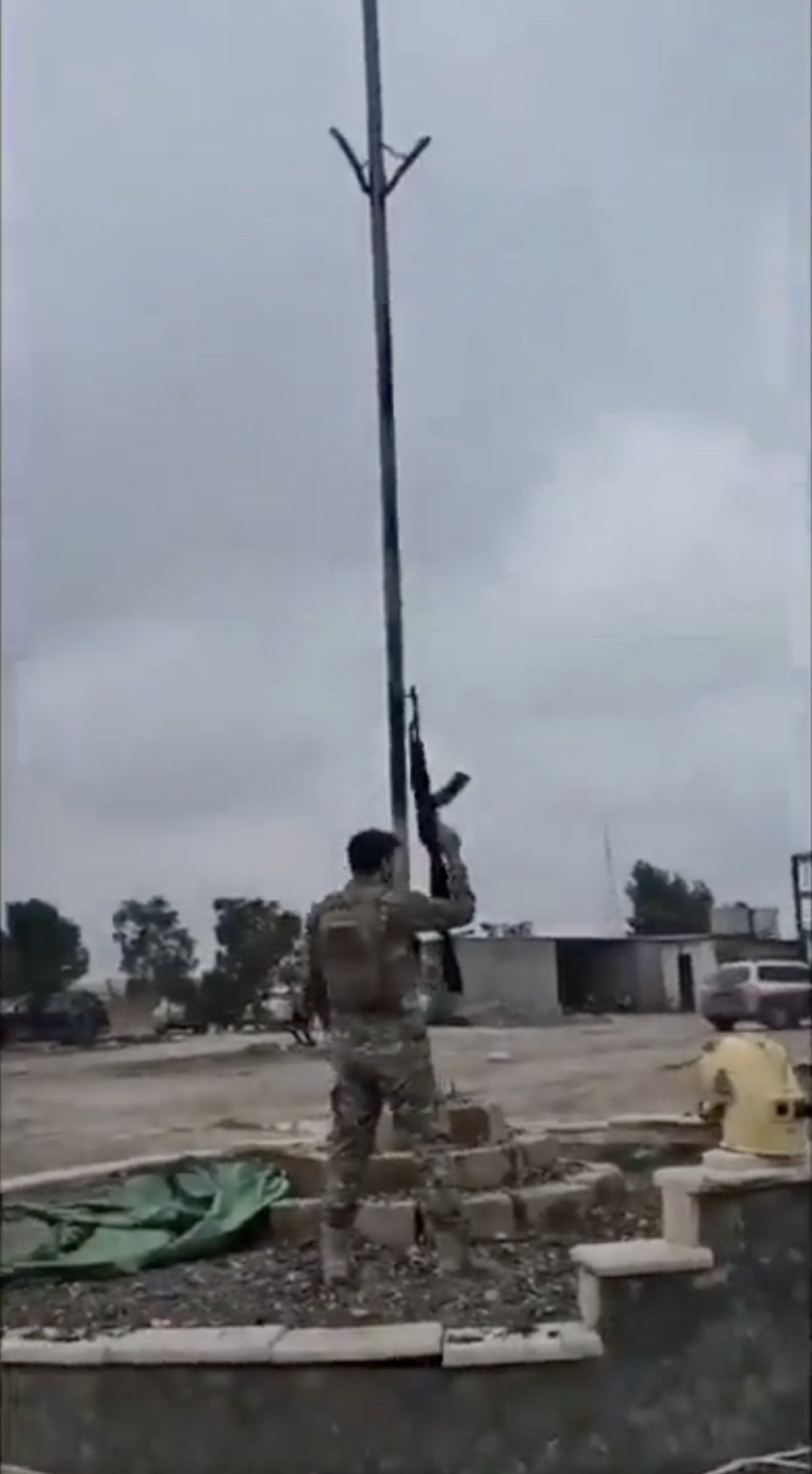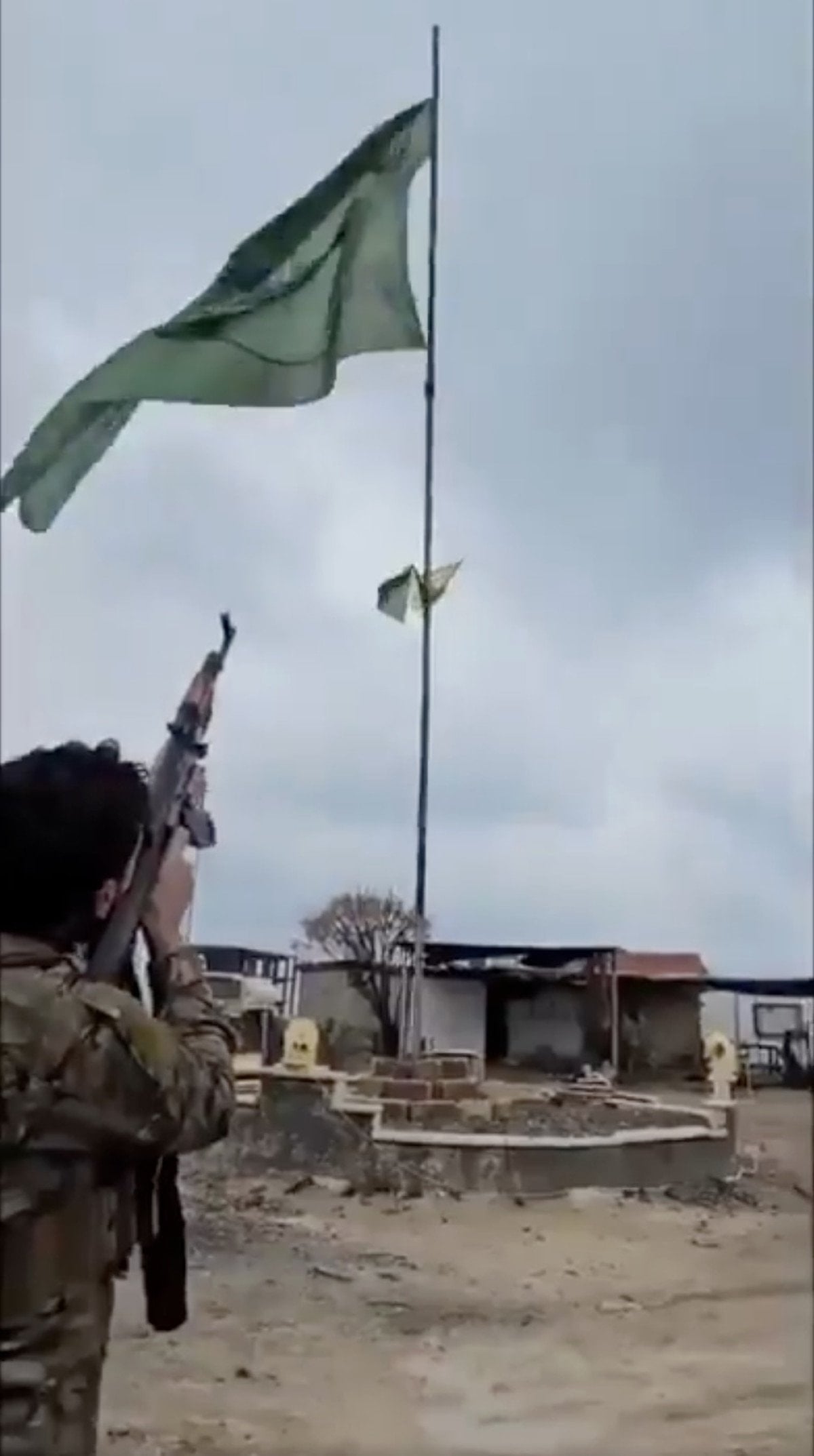 Suriyeli asker PKK/YPG paçavrasını silahla ateş ederek indirdi