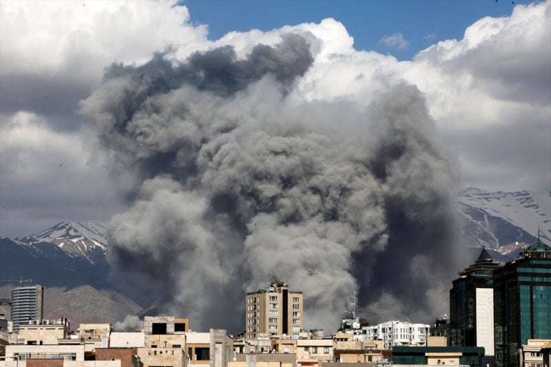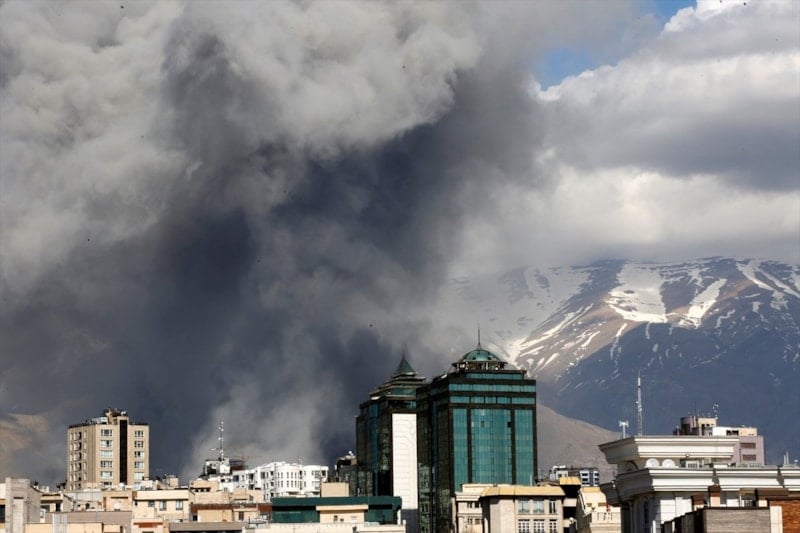 Saldırılar Tahran’ın kuzey ve doğu kesimlerine gerçekleştirilirken, vurulan noktalardan dumanlar yükseldi.